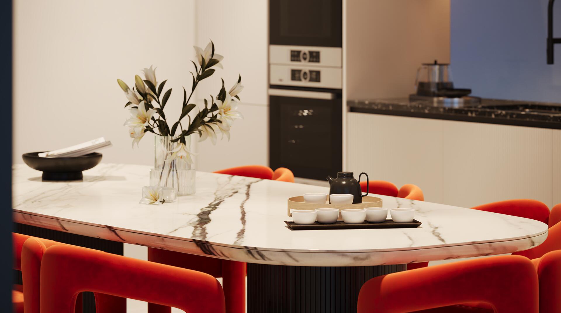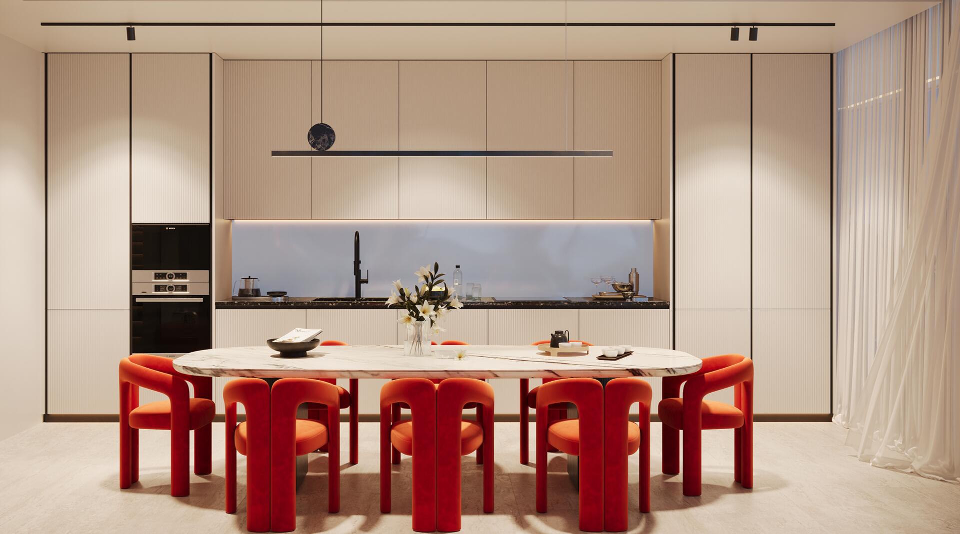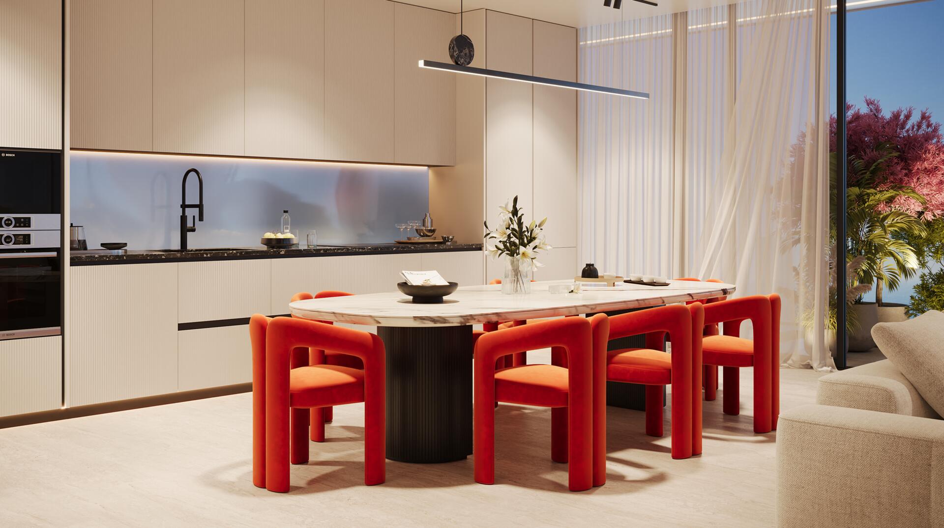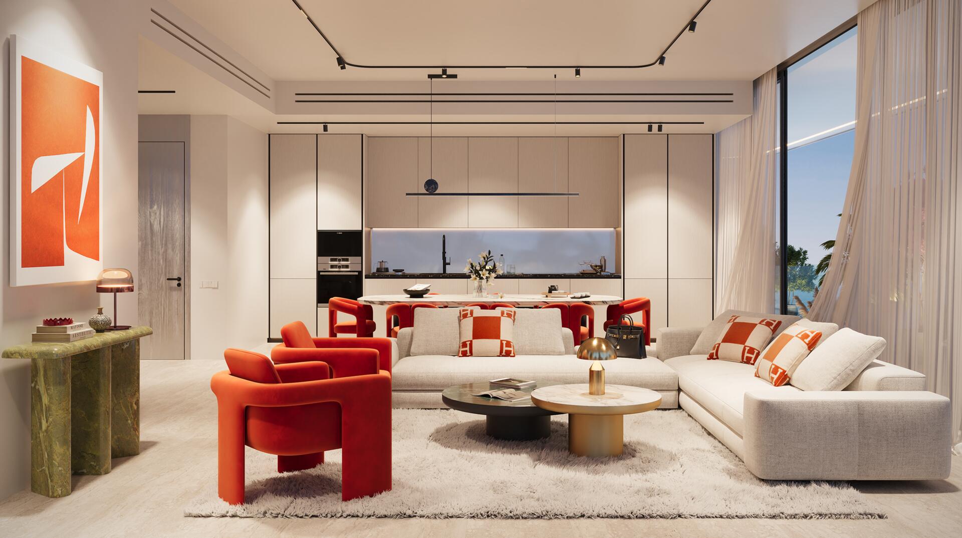Inside, each home comes fully furnished with thoughtfully chosen pieces that blend comfort with refined style, creating a warm and inviting ambience. The kitchens are crafted with high-quality materials and functional layouts, ensuring a seamless cooking experience. Premium finishes, well-appointed details, and complimentary services such as free Wi-Fi and free cleaning elevate the standard of living to a truly exceptional level.